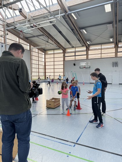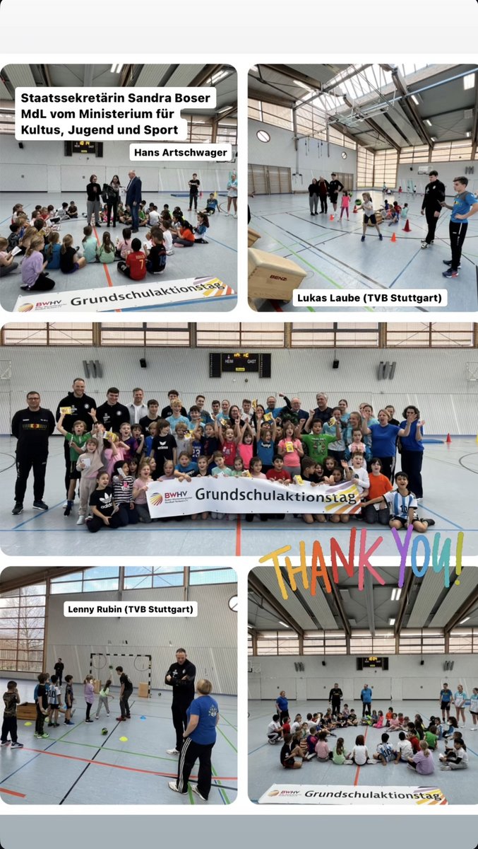 Während unsere Jugendspieler die Zweitklässler durch die einzelnen Stationen begleiteten bekamen sie dabei prominente Unterstützung vom TVB Stuttgart. Denn trotz des Heimsieges am Abend zuvor ließen es sich Lenny Rubin und Lukas Laube nicht nehmen ebenfalls in Weilimdorf vorbeizuschauen.