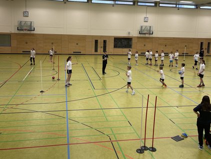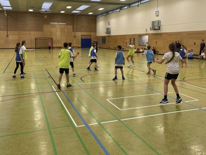 Die letzte Stunde wurde sich dann noch mit Handball spielen ausgepowert.