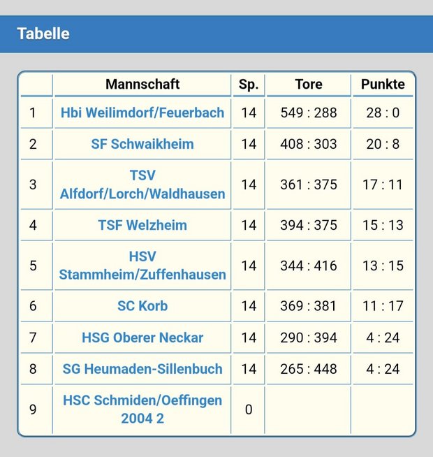 Jugend: TSF Welzheim - Hbi W/F 31:41 (12:17) - männl. B – Bezirksklasse