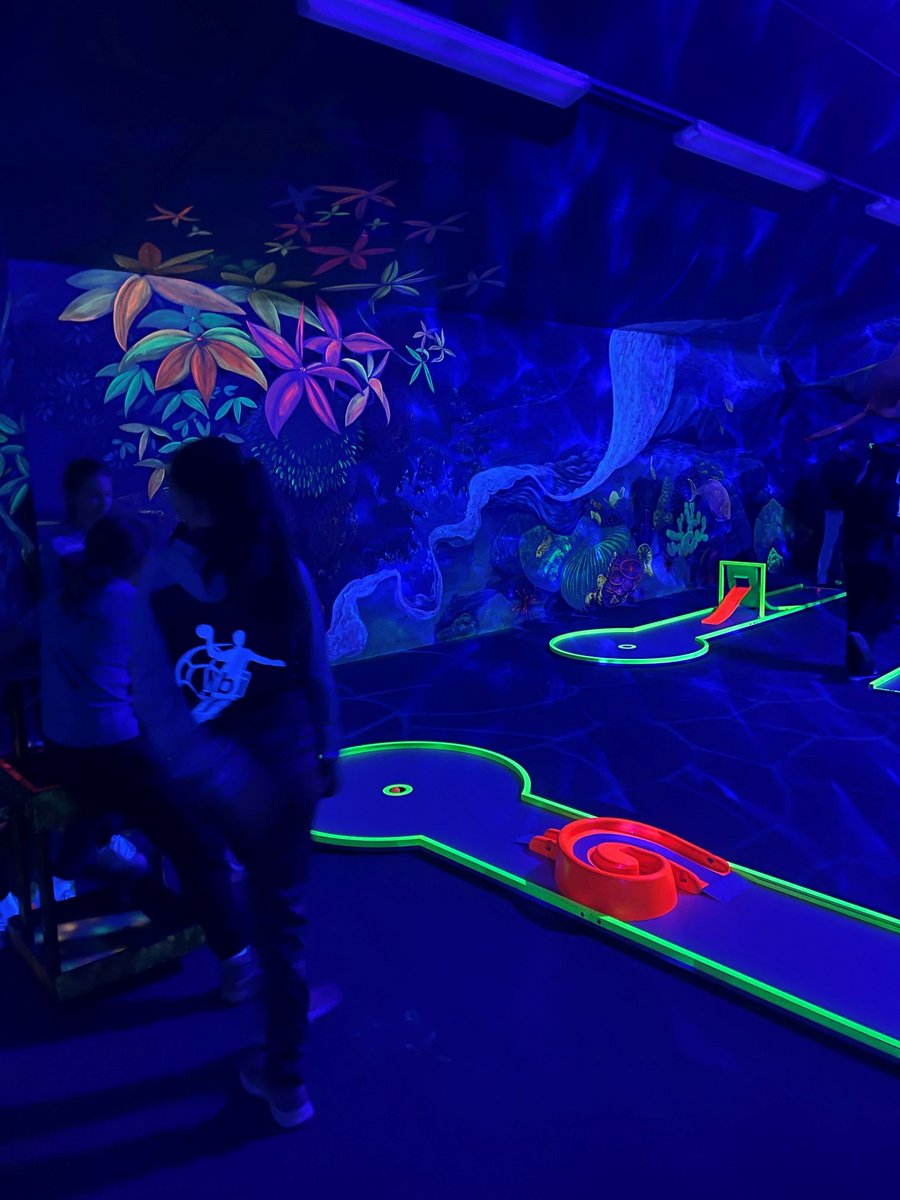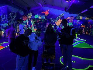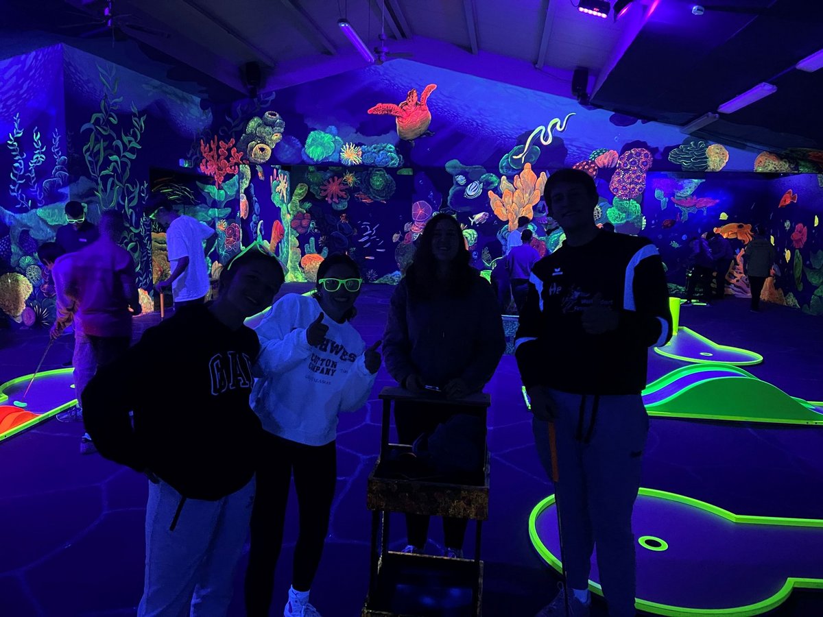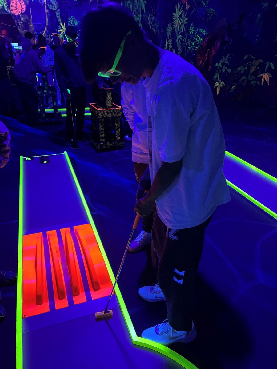 Bevor das Training heute endete, spielten wir noch ein paar Runden Handball und dann hieß es auch schon, Fix duschen und umziehen, denn wir starten direkt im Anschuss nach Zuffenhausen zum Schwarzlicht-Minigolf. Nach dem Event ging es zurück zur Halle, wo wir den Abend mit leckerer Pizza ausklingen ließen.