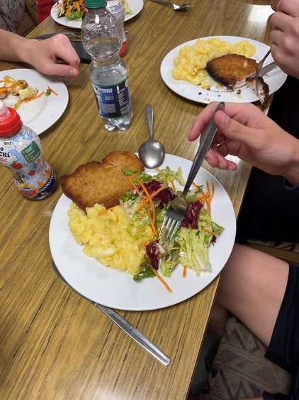 Nach 2 Stunden fleißigem Training hieß es Energie auffüllen oder auch Mittagessen! Wir wurden mit Schnitzel und Kartoffelsalat verwöhnt.