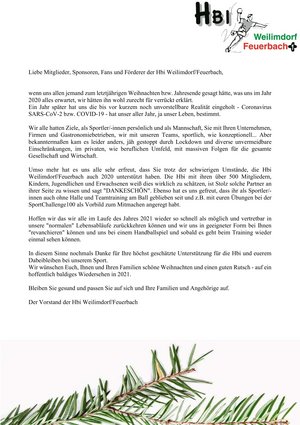 Liebe Mitglieder, Sponsoren, Fans und Förderer der Hbi Weilimdorf/Feuerbach,
